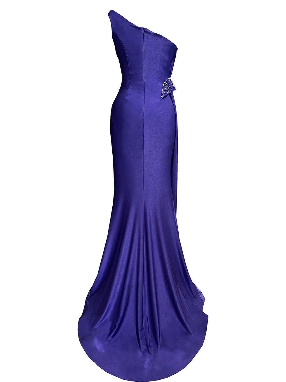 SAGRANDE Tek omuz asimetrik yoğun kristal işlemeli özel tasarım couture elbise